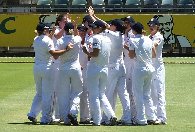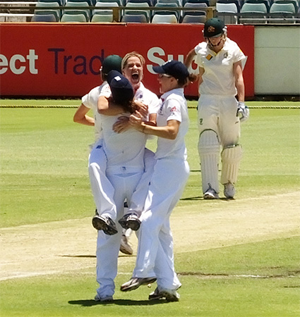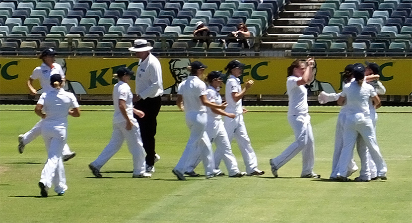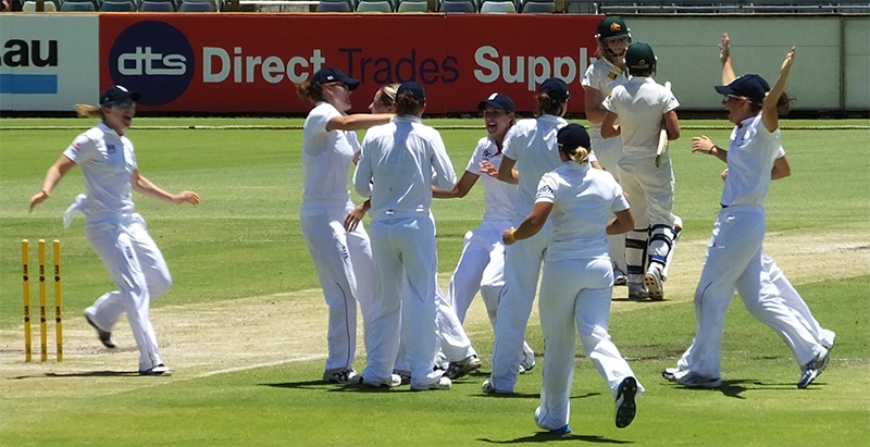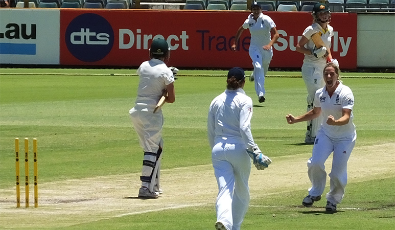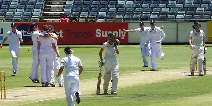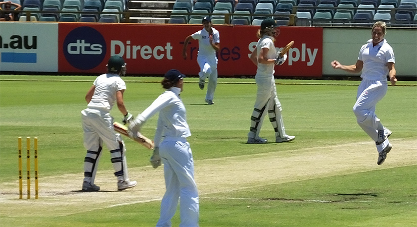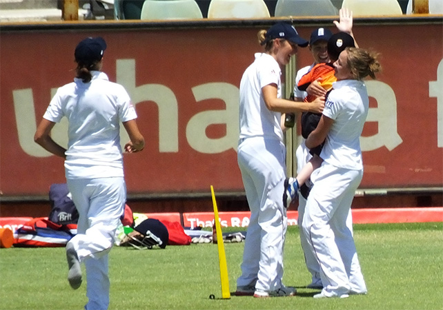 fall, bowled by Brunt off an inside edge from the first ball of the