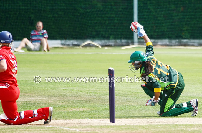 Batool Fatima pulls off a remarkable catch to dismiss Suzie Rowe in the